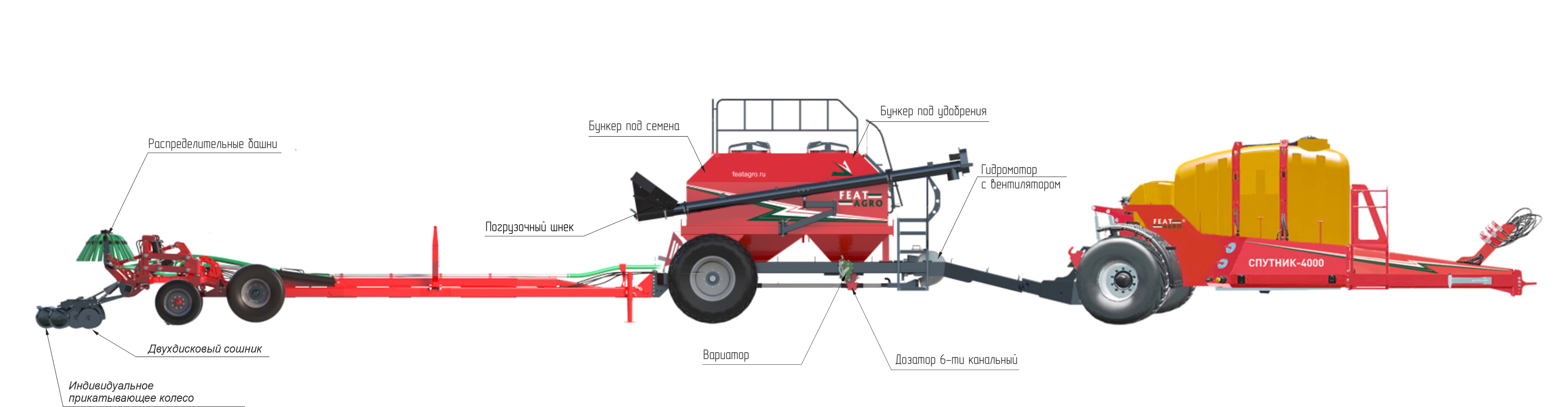 Посевные комплексы серии S (транспортная ширина 3 метра) для внесения жидких удобрений агрегатируются  с автоматической системой внесения жидких удобрений "Спутник-4000" или  "Спутник-6000"
